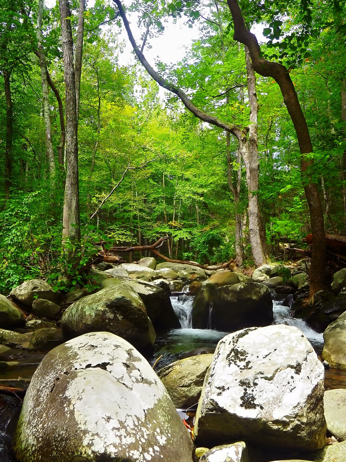 I was introduced to this little gem of a mountain stream last May by my good friend Marty and it has quickly become my favorite SNP fishing destination. It's the major tributary of a much more popular stream and although it sees its fair share of hikers, I have never encountered another angler while fishing here. If you look at this little creek on a map, you'll notice right away that it doesn't zig-zag or meander its way down the mountain. Instead, it rockets straight downhill in a series of cascades, waterfalls and plunge pools that make for ideal brook trout habitat and also one heck of a workout for the fisherman.